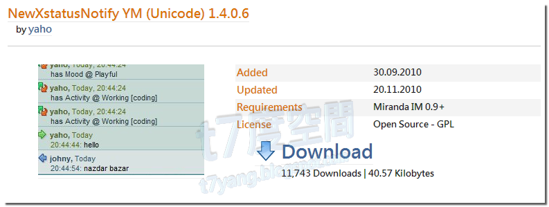 預設的Miranda可以說功能非常陽春,這是因為它想讓使用者可以自行去新增自己想要的功能。但是對一個沒有接觸過Miranda的使用者而言,要在一群外掛海中找到一些基本的外掛功能確實不容易。我以一般人都習慣的MSN使用經驗來當作出發點,列出這四個最基本、最需要的外掛元件。